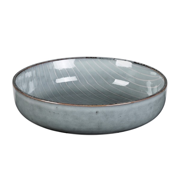 Liten skål av glaserat stengods ur serien Nordic Sea, perfekt till middagsservering eller för snacksen. Duka upp till vardag eller fest med fler delar ur samma serie, eller bryt av med andra färger. Då skålen är tillverkad för hand så varierar glasyren något - men varje exemplar är lika fint!