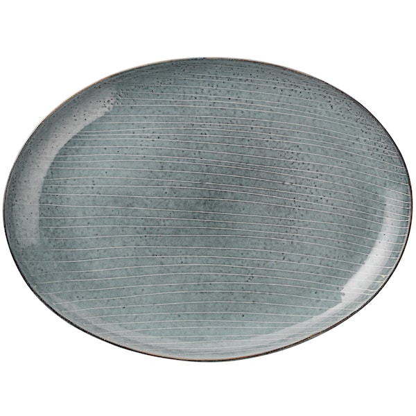 Stor oval tallrik tillverkad av glaserat stengods ur serien Nordic Sea, perfekt som uppläggningsfat. Duka upp till vardag eller fest med fler delar ur samma serie, eller bryt av med andra färger. Då fatet är tillverkad för hand så varierar glasyren något - men varje exemplar är lika fint!
