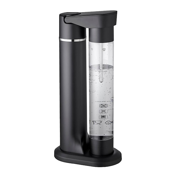 Maskinen fungerar med standard koldioxidpatroner och är utrustad med en säkerhetsventil som säkerställer att koldioxid tillsätts på ett säkert sätt utan spill. Den levereras även med en praktisk 800 ml flaska som är enkel att fästa och använda. Kolsyrecylinder ingår inte.