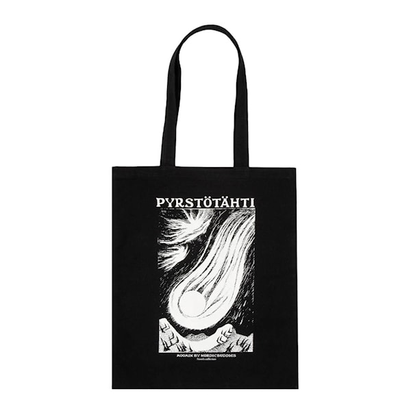Upptäck Mumin Novels tygkasse Kometen, 38,5x42 cm, från Nordicbuddies. Väskan har ett detaljerat motiv från romanens berättelse på framsidan och Mumintrollet på baksidan. Perfekt för att bära hem matvaror, böcker eller personliga saker med stil.