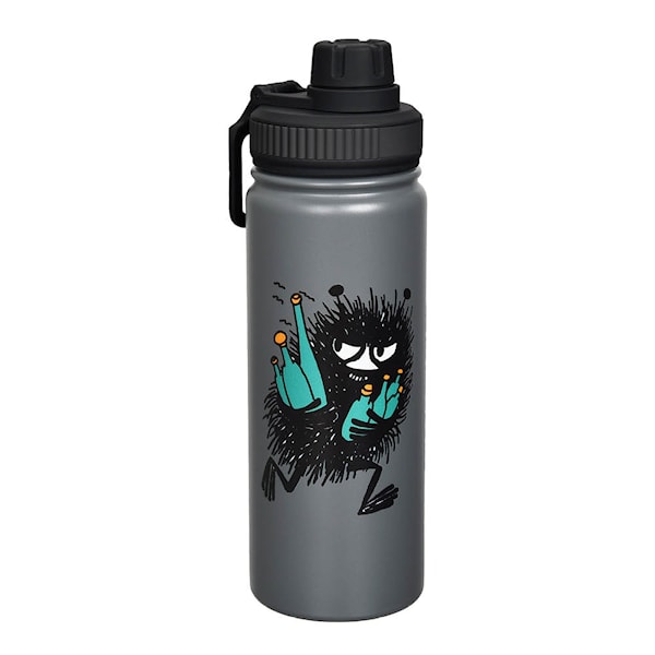 Den charmiga Mumin-designen ger flaskan ett iögonfallande uttryck. Den är lätt att ta med sig och har en praktisk skruvkork i plast som säkerställer att den håller tätt. Det avtagbara locket gör den enkel att fylla och kan även användas för att fästa flaskan på en väska eller andra föremål.