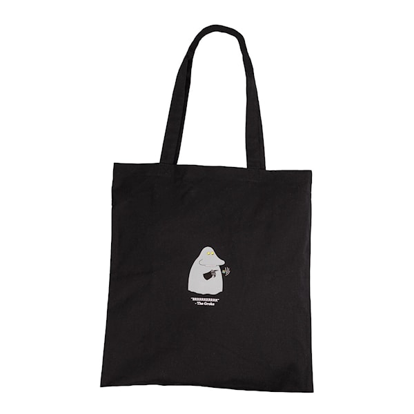 Mumin tygkasse 38,5x42 cm Hufsa svart från Nordicbuddies. Denna tygkasse med sitt stilrena svarta design och en slående illustration av Hufsa på framsidan är ett funktionellt och trendigt val för vardagen. Med måtten 38,5 x 42 cm erbjuder den gott om plats för dagligvaror, böcker eller andra nödvändigheter, medan Nordicbuddies-logotypen på baksidan tillför ett modernt och minimalistiskt uttryck.