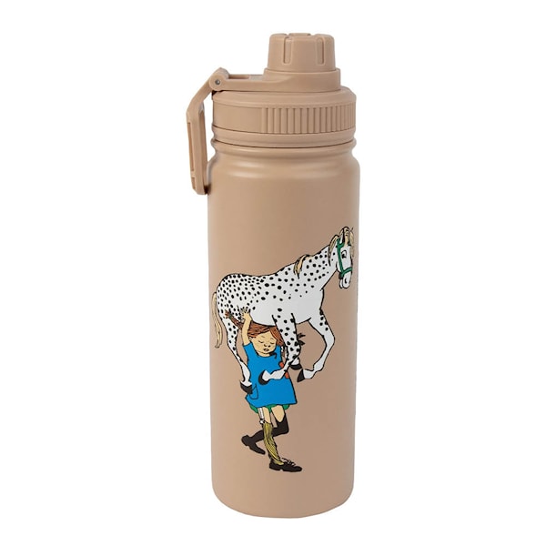 Upptäck Pippi termosflaska 0,55 L från Nordicbuddies – en termos som kombinerar lekfull Pippi-design med praktiska funktioner. Med dubbla väggar i rostfritt stål håller flaskan drycken varm eller kall i upp till 6 timmar, samtidigt som utsidan förblir sval.