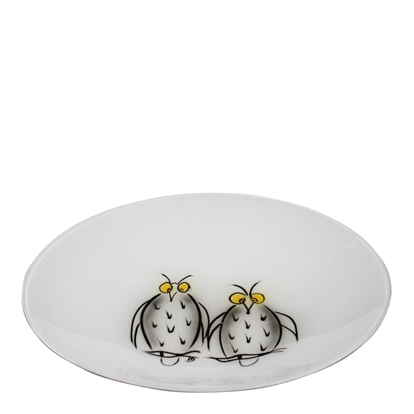 Fat från Nybro Crystal, handmålade ugglor med inspiration från skogarna i Glasriket formgiven av Lena Sonesson.