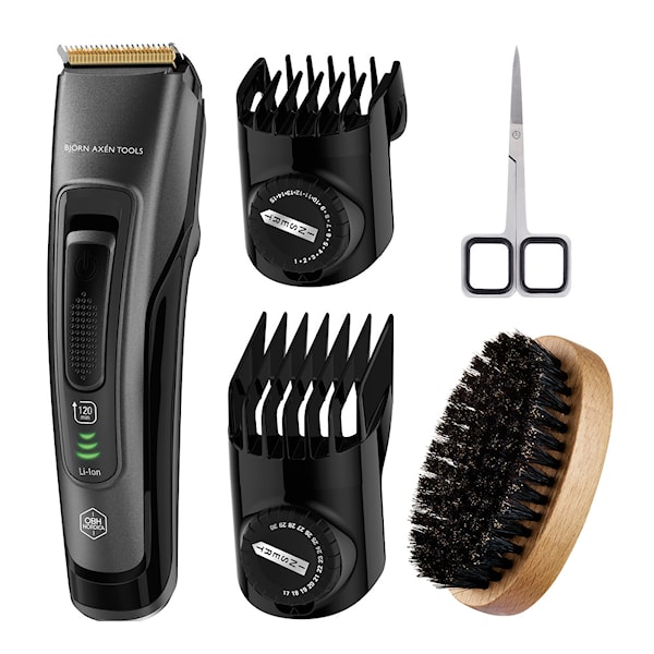 OBH Nordica Björn Axén Tools Beard & Hair Trimming Kit HH4500N0 – Skäggtrimmerset för professionell styling. Forma skägget precis som du vill med Björn Axén Tools beard kit, utvecklat i samarbete med professionella stylister. Setet innehåller en skäggtrimmer med två kammar, mustaschsax, borste med naturborst och ett robust reseetui – allt du behöver för att vårda och forma skägg och mustasch med precision.