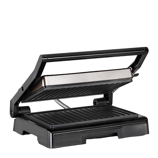 Bronze Panini Maker är en smörgåsgrill med 1000 W effekt och en non-stickbelagd yta som gör att maten inte fastnar och rengöringen blir enkel. För att minska rök och lukt har den även ett smultråg som fångar upp smulor från brödet. Dess 1,1 meter långa sladd ger dig flexibilitet i köket.