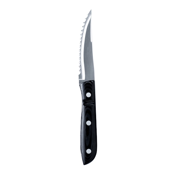 Extra stora grillknivar ur serien Old Farmer, en mycket populär bestickserie från Gense. Knivens blad är tillverkat av molybden vanadium-stål, särskilt bra för kött och grillat men passar självklart bra även till andra maträtter. Det svarta handtaget är tillverkat av micarta, ett hållbart och vattentåligt material med skiftande yta. Micarta är mycket hygieniskt och lämpar sig väl för köksmiljöer.