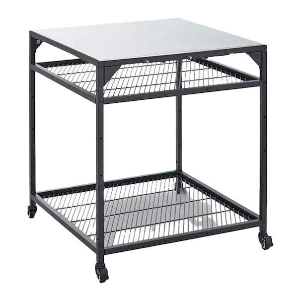 Bord är tillverkade av robust pulverlackerat kolstål. Med 2 höj- och sänkbara hyllor och inbyggda krokar för dina tillbehör. Dessutom kommer de 2 låsbara hjulen att hålla ditt bord stadigt medan du lagar mat.