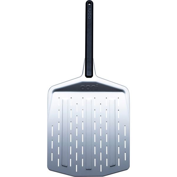 Denna perforerade pizzaspade från Ooni är tillverkad i anodiserad aluminium och har en bredd på 35 cm. Den lätta konstruktionen och den tunna, avsmalnande kanten gör det enkelt att skjuta in spaden under pizzan. Perforeringarna låter överflödig fukt och mjöl falla igenom, vilket ger en jämnare gräddning och krispigare botten.