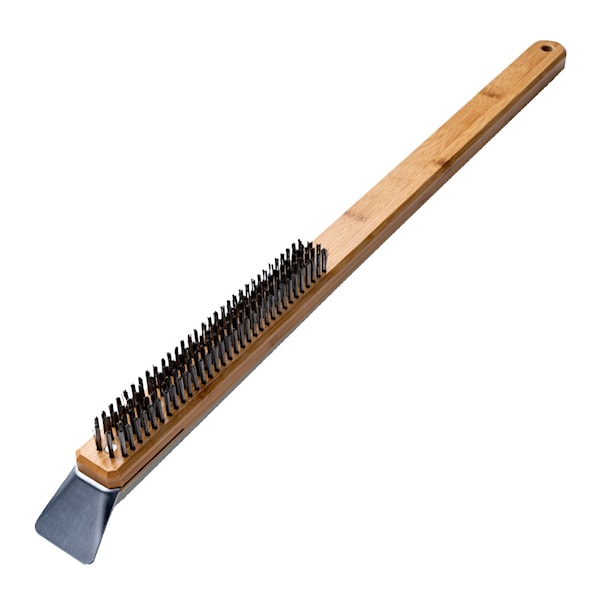 Denna ugnsborste från Ooni kombinerar funktionaliteten hos en stålborste och en skrapa, och är utformad för att ge en grundlig rengöring av pizzastenen efter användning. Med slitstarka borst och skrapa i rostfritt stål samt ett robust handtag i bambu är den lätt att använda och ger ett bra resultat varje gång.