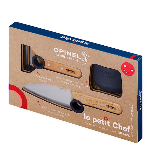 Le Petit Chef knivset från Opinel låter barn upptäcka glädjen i att laga mat på ett tryggt sätt. Knivens träningsring och skärhjälp gör att barnet lär sig korrekt handposition redan från början.