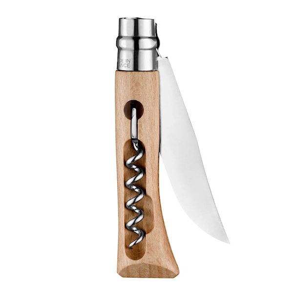 Flasköppnare och upphängningskrok i stål är integrerat för maximal funktionalitet. Med sitt handtag i bokträ blir detta ett oumbärligt verktyg för utflykten.