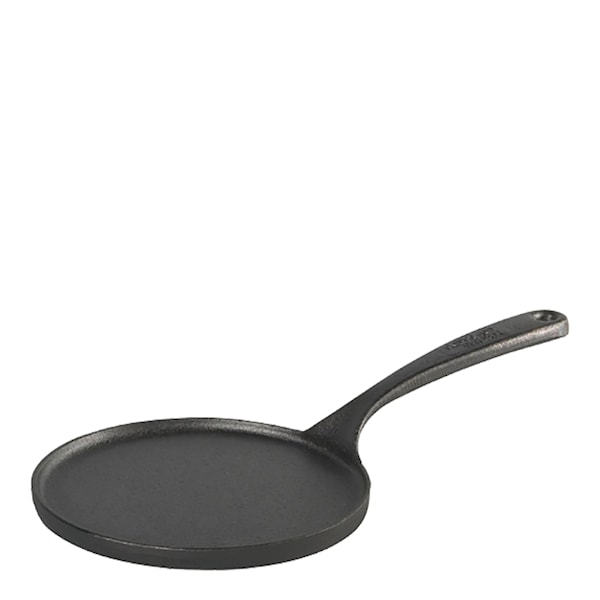 Crepepanna med gjutjärnshandtag från Skeppshult. Denna gjutjärnspanna kan du med rätt skötsel ha hela livet. Trots att värmekällor kommer och går kommer alltid gjutjärnet bestå - denna panna kan du nämligen ha både på alla värmekällor, från öppen eld till induktionshäll. I en väl infettad gjutjärnspanna behövs det dessutom inte mycket fett.