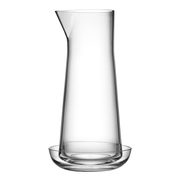 Karaffen är behaglig att hålla i och har en väl tilltagen pip, vilket gör att drycken snabbt går att hällas upp. Den står på ett dekorativt litet fat, som även kan användas till att lägga upp lite snacks på.