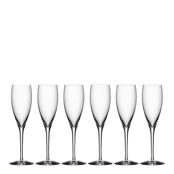 Med More champagneglas 18 cl från Orrefors blir varje skål en upplevelse. De långsmala kuporna är perfekta för mousserande vin och har en bubbelpunkt i botten som får dryckens kolsyra att stiga jämnt och långsamt, vilket förhöjer både smak och visuell effekt.