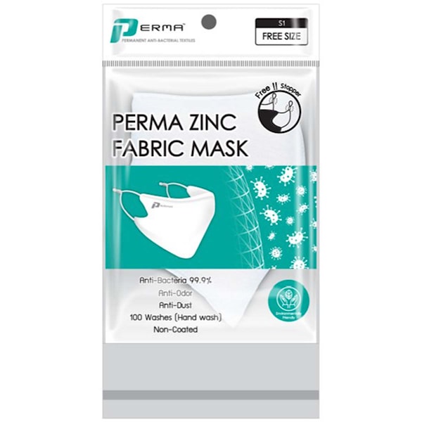 Reducerar bakterietillväxt på själva tyget/masken. Med nanozinkoxid (ZnO) integrerat i tygfibrerna är Permas ansiktsmask permanent antimikrobiell.