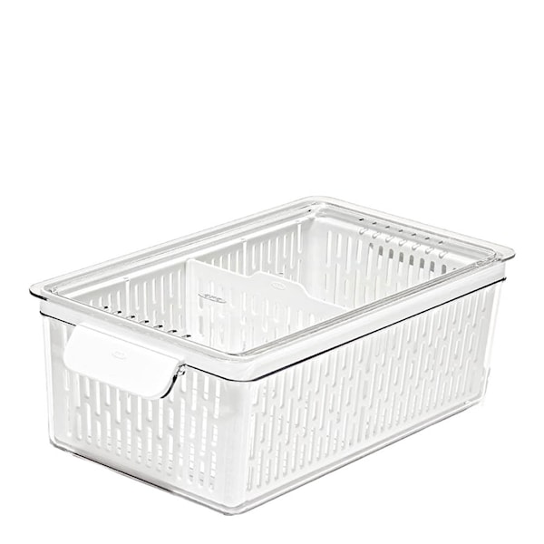 OXO Good Grips kylskåpsförvaring i mellanstor modell är idealisk för dig som vill förvara färska råvaror som sallad, paprika, vindruvor och annan frukt och grönt på ett strukturerat och hygieniskt sätt.