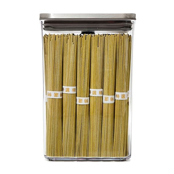 Stål POP Behållare rektangulär 2,6 L från OXO är perfekt för socker, mjöl, pasta, ris och andra torra livsmedel. Locket har en unik tryckfunktion som ser till att det sluter helt tätt samtidigt som det fungerar som handtag när det öppnas. Den lufttäta förseglingen håller maten fräsch längre.