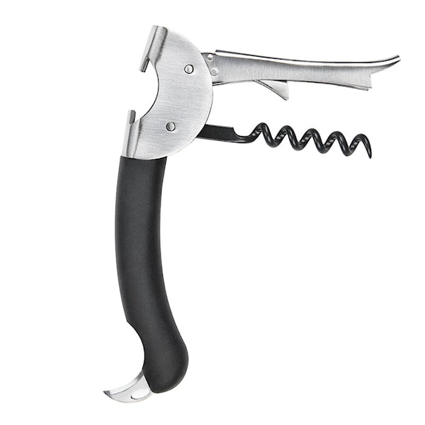 Korkskruv 13,5 cm. Upplev sömlös vinöppning med en professionell känsla. I dubbelhandtaget finns folieskärare och flasköppnare. I två rörelser är det tack vare den halkfria skruven och pålitliga designen enkelt att öppna alla flaskor. Med kombinerad stil och pålitlighet är Oxo:s korkskruv en följeslagare för varje vintillfälle!