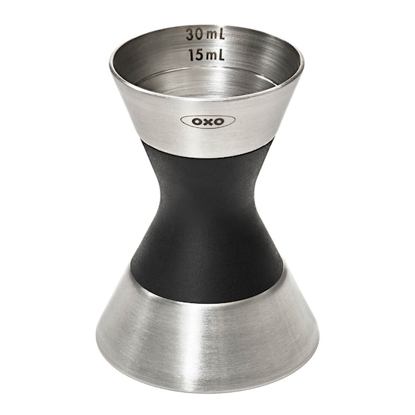 Måttbägare Dubbel. Utforska konsten av exakt mixning med en dubbla måttbägare i borstat rostfritt stål. Det mjuka halkfria greppet gör den bekväm att använda. Varje sida av måttbägaren erbjuder exakta mätningar på 5, 15 och 30 ml respektive 10, 20 och 50 ml för dina drinkkreationer.