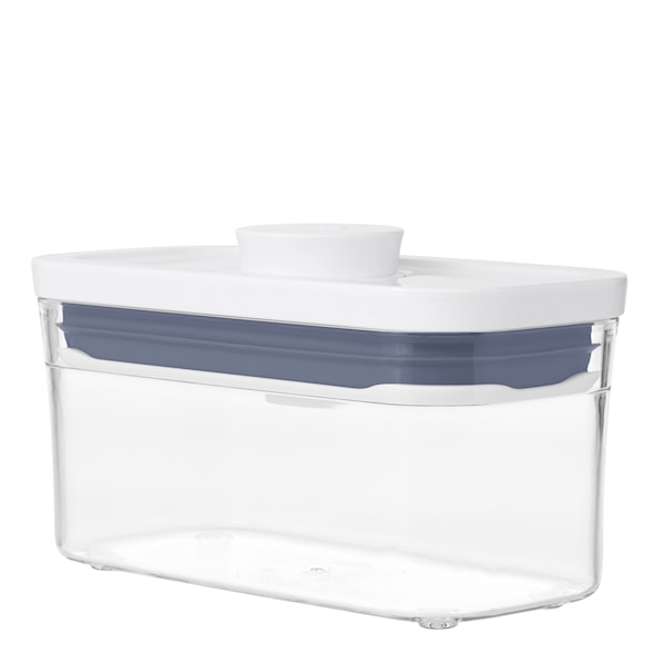 Denna praktiska behållare ur serien Pop från Oxo ser till att du kan nyttja dina utrymmen till fullo. Fyll behållaren med önskat innehåll och ställ den i skåpet, på bänken eller på hyllan. Behållaren är stapelbar och tack vare dess fyrkantiga form kan den ställas dikt mot väggar och hörn. Öppna locket genom att trycka upp knoppen och använd det som handtag, förslut den på samma sätt för en lufttät förvaring! Tillverkad i ABS-plast och tål diskmaskin.