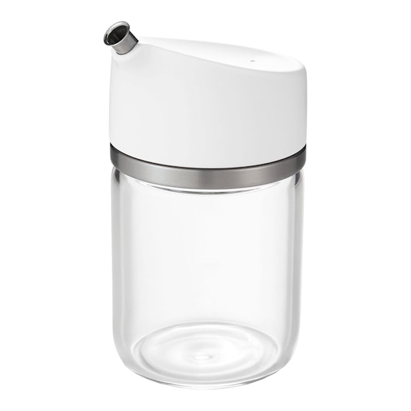 Glasbehållaren från Oxo är perfekt att använda till exempelvis soja eller chiliolja och rymmer 150 ml. Pipen är lätt böjd vilket motverkar spill och håller både flaskan samt bordet rent och snyggt. Ställ fram den snygga glasflaskan på bordet eller låt den stå på köksbänken, oavsett var den står kommer du ha stor nytta av den i köket. Den är tillverkad i borosilikatglas och tål diskmaskin.