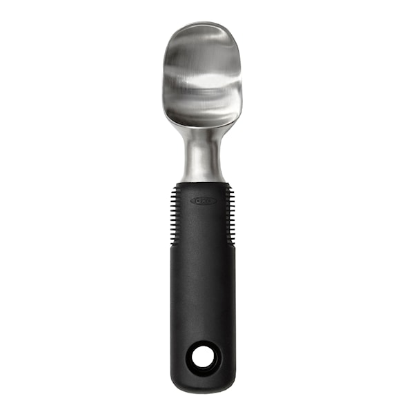 Glasskopan från Oxo är tillverkad i rostfritt stål och har ett bekvämt handtag i termoplast. Använd skopan för att lägga upp och servera stora, fina glasskulor. Tål diskmaskin.
