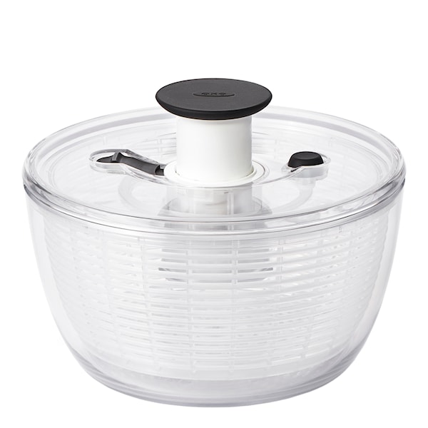 Den här lilla salladsslungan är perfekt för att torka sallad, örter eller bär. Pumpmekanismen gör det enkelt att snurra salladen genom att trycka ned den mjuka knoppen till locket. Bromsknappen låter dig stoppa korgen från att snurra, och en halkfri ring under håller skålen på plats.
