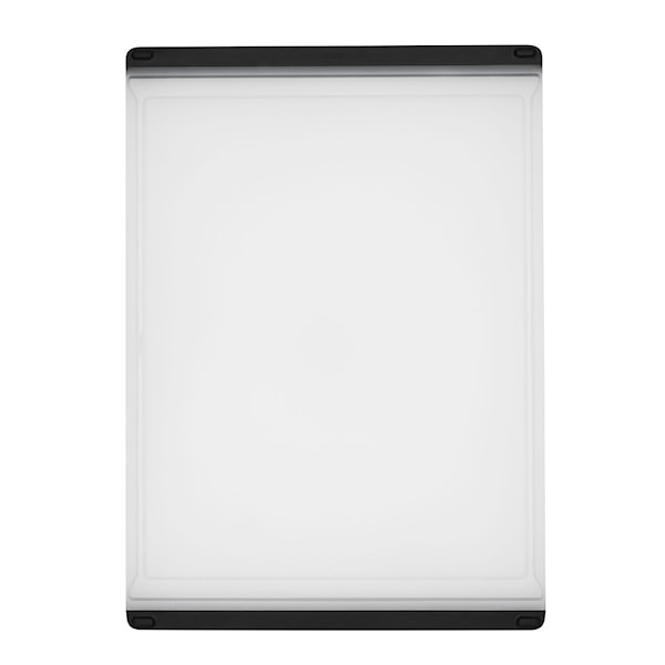 När du har stora mängder ingredienser att skära är OXO skärbräda 38 cm i vit/svart den perfekta följeslagaren. Den stora, icke-porösa ytan förblir fri från lukt och bakterier, och den dubbelsidiga designen gör det enkelt att separera olika råvaror – använd till exempel ena sidan för kött och den andra för grönsaker.
