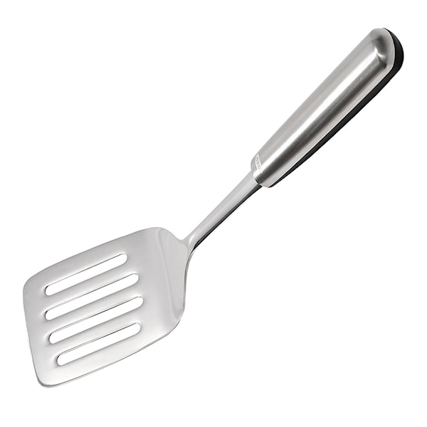 Med denna stekspade i stål från OXO i handen kan du bryna köttfärs, vända pannbiffar, ägg och pannkakor med självförtroende. Stekspaden har ett extra robust huvud som är tillräckligt flexibelt för att glida in under maten, men samtidigt starkt nog för att lyfta maten säkert. Dessutom har stekspaden halkfritt grepp.