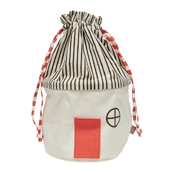 Korgen är tillverkad i 100 % bomull och har en öppning som fungerar som en liten dörr, vilket uppmuntrar till fantasifull lek. Samtidigt ger den gott om plats för leksaker, böcker och andra små föremål.