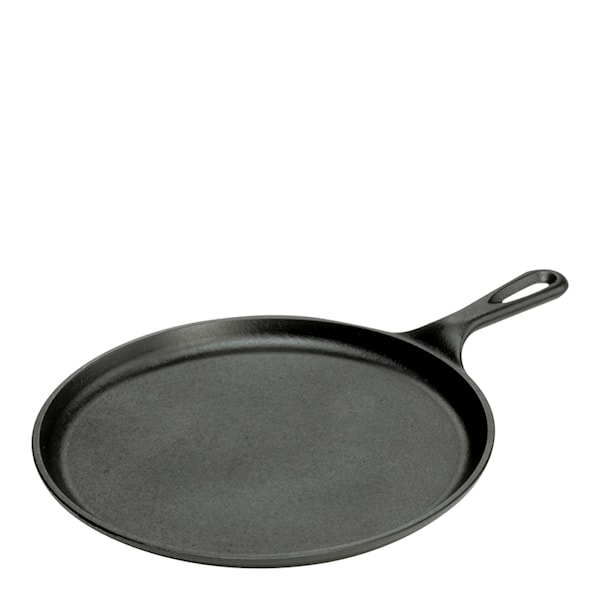 Lodge Classic Collection gjutjärnspanna 27 cm är en dedikerad pannkakspanna med låg kant som gör det enkelt att vända och hantera tunna smetar. Oavsett om du gör frasiga pannkakor, crêpes eller quesadillas får du ett jämnt och gott resultat.