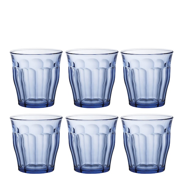 Picardie vattenglas 25 cl från Duralex är ett perfekt exempel på hur funktion möter tidlös design. De sex glasen i setet är tillverkade av tåligt härdat glas som står emot både stötar och temperaturväxlingar.