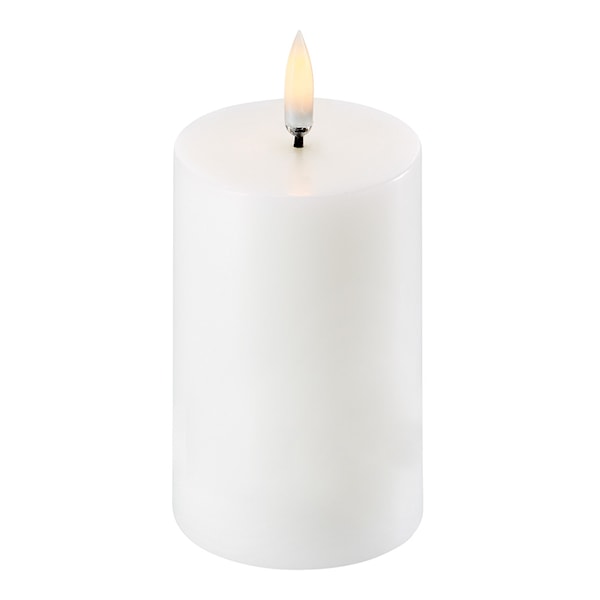 Nu behöver du inte längre oroa dig över om du har glömt att släcka ljuset. Med Piffany Copenhagens batteridrivna pelarljus från serien Uyuni får du en mycket verklighetstrogen känsla av levande ljus. Ljusen är beklädda med äkta vax och tack vare den patenterade 3D lågan ger de ett fladdrande sken och varierar i ljusstyrka precis som en äkta låga. Du skapar samma mysiga stämning som med tända ljus samt med fördelen att du också slipper rök och partiklar av sot och kemikalier som frigörs vid användning av traditionella ljus. Kombinera gärna med andra ljus från serien Uyuni som finns i flera olika storlekar och utföranden.
