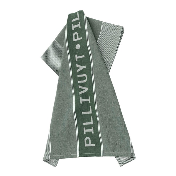 Pillivuyt Recycle kökshandduk 80x50 cm grön är en kökstextil tillverkad av återvunna textilier. Tyget produceras av textilrester som sorteras efter färg, rivs upp till fibrer och spinns och vävs till nytt tyg. Detta kan ge små nyansskillnader mellan olika partier.
