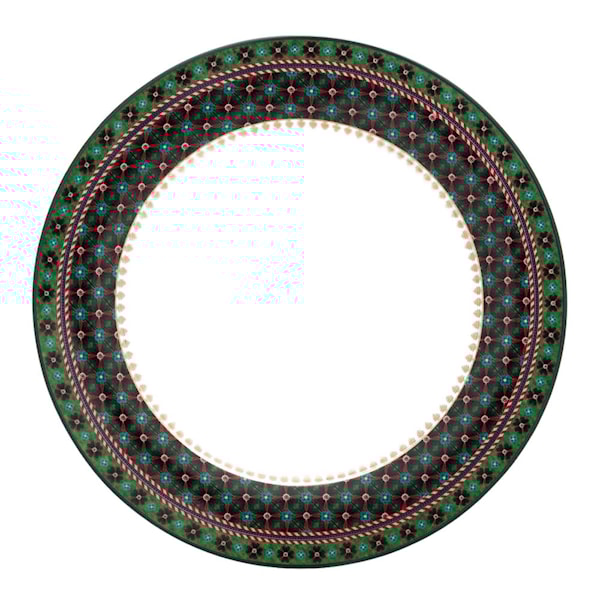 • Detaljerat mönster med guldkant och färgstark rand