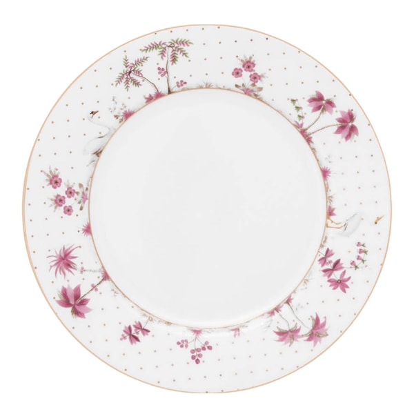 • Elegant tallrik i rosa med guldprickar