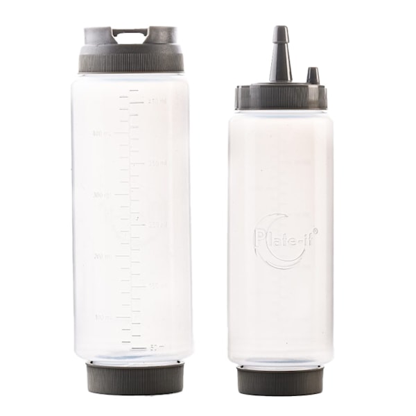 Flaskorna ger dig full kontroll vid uppläggning och fungerar utmärkt tillsammans med andra verktyg som pensel, pincett eller pusher från Plate It. Perfekta för både professionella kockar och hemmakockar som vill presentera maten med stil.