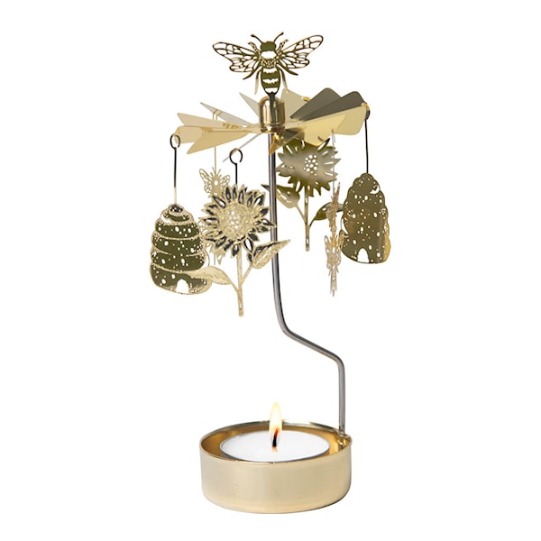 Skapa en fridfull och naturlig stämning med Bee Mine änglaspel från Pluto! Med sitt guldiga utförande och detaljer av bin, solroser och bikupor sprider det en mjuk och behaglig atmosfär när värmeljuset får figurerna att snurra.