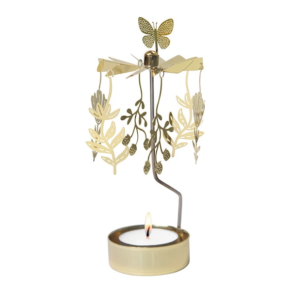 Låt Meadow änglaspel från Pluto sprida en rofylld och blomstrande känsla i ditt hem! Inspirerat av en sommaräng pryds denna roterande ljushållare av en fjäril i toppen och blommor som snurrar när värmeljuset tänds.