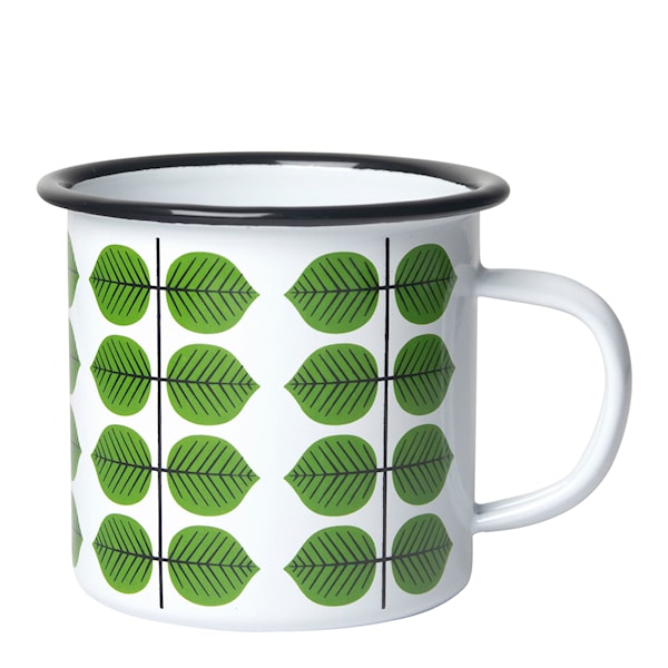 Denna vackra emaljmugg på 35 cl i vit och grön är det perfekta valet för att inleda din dag med en varm kopp kaffe eller te, eller att ta med på utflykter. Prydd med det ikoniska Berså-mönstret, skapat av Stig Lindberg, ger den en touch av skandinavisk elegans till ditt kök. Muggen rymmer 0,35 liter och är både praktisk och hållbar, då den är tillverkad av högkvalitativ emalj som klarar diskmaskin. Med sin handmålade yta och tidlösa design passar denna mugg lika bra inomhus som utomhus, och blir snabbt en favorit i alla sammanhang.