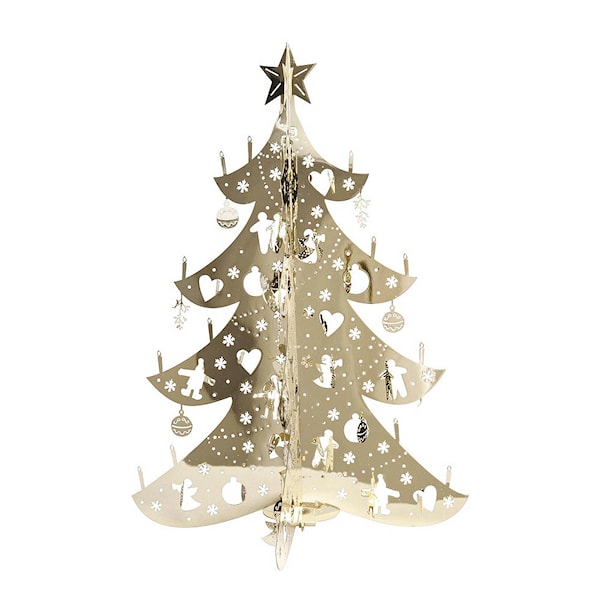 Skimrande dekorationsgran i guldfärgad metall, perfekt för dig som kanske inte har plats för en riktig julgran. Ställ granen i fönstret, i en hylla eller mitt på bordet för att höja julstämningen i vinter.