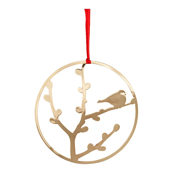 En domherre sittandes på en gren är motivet i detta fina blanka metallhänge från Pluto. Skiner fint i granen eller granriset och ger det lilla extra till det traditionella julpyntet.