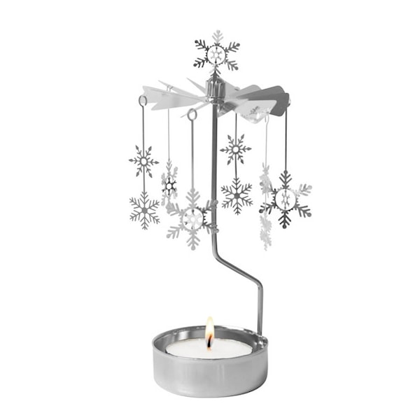 Snowfall änglaspel från Pluto Design är en modern och stilren version av det klassiska änglaspelet. De silverfärgade snöflingorna roterar långsamt i värmen från ljuset och sprider ett lugnt och vintrigt sken.