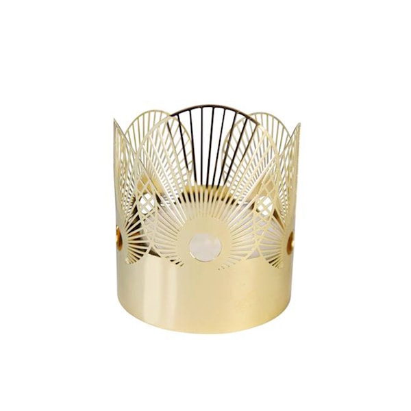 Ljusstaken har en fantastisk design med detaljer som kan liknas vid påfågelsfjädrar. Tänd värmeljuset och njut av det fina ljusspelet som skapas! Ljuslyktan är tillverkad av metall och finns i två olika färgutföranden att välja mellan. Sun Ljuslykta kommer stå fint på ditt bord eller fönsterbräda.