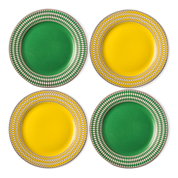 Det sägs att det är det första schackdraget som avgör matchen. Det är dock redan avgjort att dessa tallrikar från Pols potten kommer bli till en stor favorit. Chess tallrikar kommer i ett set om fyra, och mäter 19,3 cm i diameter. De är tillverkade i porslin med matt glasering och matta gulddetaljer. Använd assietterna till frukostens macka eller som färggranna smycken vid middagsdukningen. Varje set kommer med två färger, gult och grönt, och är garanterat ett smart drag.