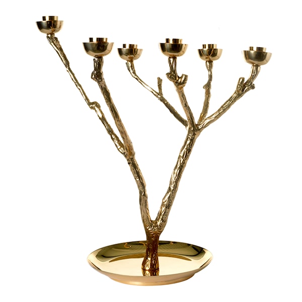 Twiggy är en vacker ljusstake från designstudion Pols Potten. Skira grenar som står stadigt på en fot i form av en tallrik, med hållare för sex kronljus. Kombinationen mässing och den naturliga formen blir en fin mix av stabilt och skört. Placera den tillsammans med flera ljusstakar för en maffig känsla på det dukade bordet, eller låt ljusstaken stå stolt för sig själv på en sidobänk. Låt den lysa upp mörka kvällar eller sena nätter.