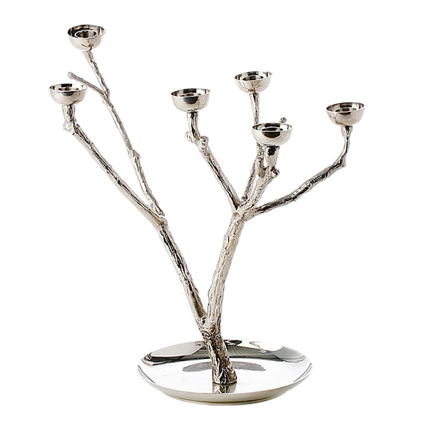 Twiggy är en vacker ljusstake från designstudion Pols Potten. Skira grenar som står stadigt på en fot i form av en tallrik, med hållare för sex kronljus. Kombinationen mässing och den naturliga formen blir en fin mix av stabilt och skört. Placera den tillsammans med flera ljusstakar för en maffig känsla på det dukade bordet, eller låt ljusstaken stå stolt för sig själv på en sidobänk. Låt den lysa upp mörka kvällar eller sena nätter.