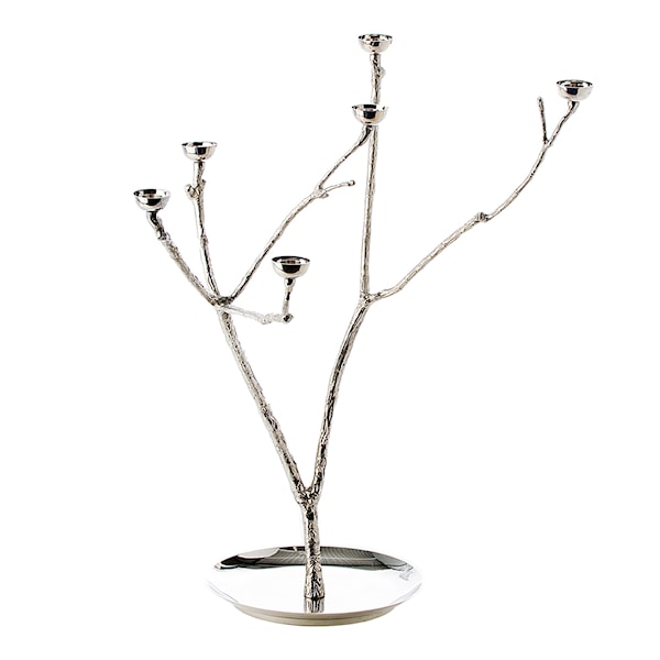 Den vackra ljusstaken Twiggy kommer från designstudion Pols Potten. Den är tillverkad i mässing och har skira grenar som står stadigt på en tallriksformad fot. Den har sex ljushållare för kronljus, och kombinationen av den naturliga formen och mässingen skapar en fin mix skört och stabilt. Med sin imponerande höjd på 65 cm kan den förgylla ett helt rum, eller ingå som en del i en samling av ljusstakar i olika höjd. Låt den lysa upp mörka kvällar, eller sena nätter i goda vänners lag.