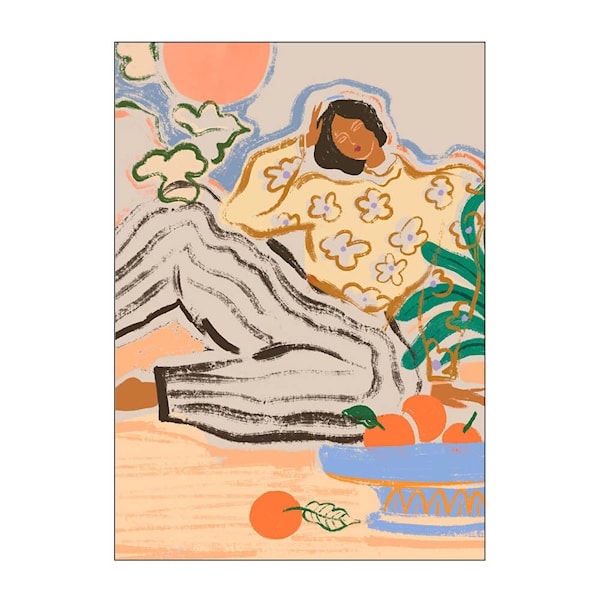 Arty Guava poster 50x70 cm lazy days från Poster & Frame. Lay Hoon, mer känd som Arty Guava, är en konstnär med rötter i Malaysia och som numera bor i Vancouver, Kanada. Hon arbetar med en mängd olika medier, inklusive digital konst, traditionellt måleri, storskaliga väggmålningar och digitala konstinstallationer.